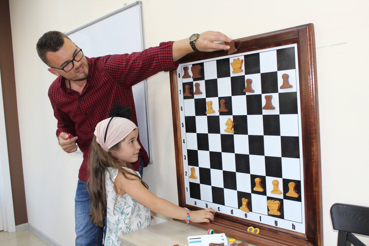7-ми летний ребенок каждый раз с удовольствием идет на занятия, так как ему нравится играть и решать задачи! За время обучения он многому научился, знает, как ходят фигуры и их названия. В школе классные часы, доска и столики!