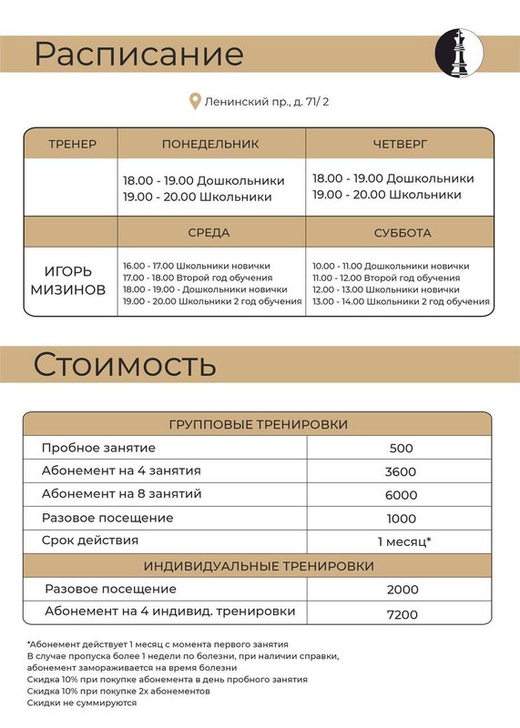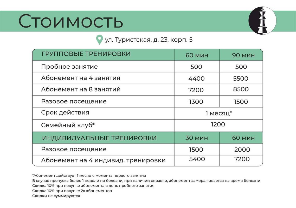 Разовое посещение / Шахматы В любой день 1000 ₽ 60 мин